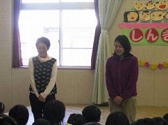 新しい担任の先生を紹介しました。さくら組は渥海先生。たんぽぽ組は出浦先生。新しい先生にわくわくしているお友達でした!わくわくしたのはお母さんもですね。