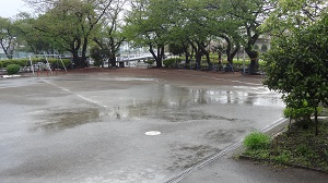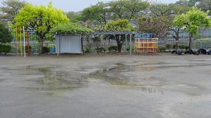 園庭はあっという間にびしょぬれです。みんなのところはどうでしたか?