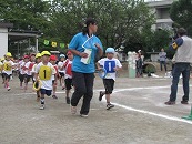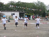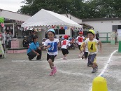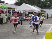プログラム3番は全園児の 「かけっこ」です。ゴールを目指して、力いっぱい走りました。
