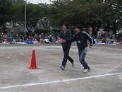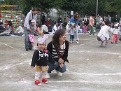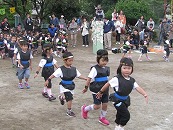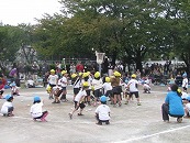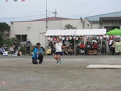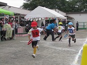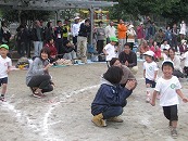 役員さんが企画したこの競技。楽しい競技になるか、ドキドキハラハラされていましたが、競技前半にリードを奪われた年長組混合チームが、後半に追い上げて、盛り上がりました。午前中の保護者競技では涙をのんだ年長組さんが、午後は勝利の涙を味わうことができました。よかったですね。 プログラム16番 年長競技「リレー」 運動会で一番盛り上がる競技です。今年の運動会もたくさんの応援の声があがりました。