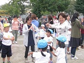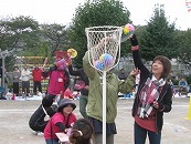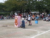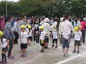 運動会午後の部です。プログラム13番、全園児合同競技「玉いれ」からスタートです。 今日はお片付け競争も入れて3回勝負をしましたが、どの対戦も、みんな白組(たんぽぽ組・すみれ組)の勝ちとなりました。赤組(さくら組・つくし組)さん、あともう少しの差でしたね。でも、どちらも頑張りました!プログラム14番 小学生競技「運んで つないで 元気玉!!」 なんと、74名の小学生が参加してくれました。2人で息を合わせてそっーと運ばないと、すぐに落ちてしまう元気玉。。。1,2年生は苦戦していましたが、頑張って参加してくれました。学年が上がるにつれて、運び方歩き方もスムーズに。運動会を盛り上げてくれてありがとうごさいました。 プログラム15番 保護者競技「うちわサンドイッチの玉入れレース」