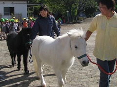 幼稚園にリトルホースのジャックとダンディが来て、触れ合い体験を行いました。