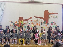 第五幼稚園バージョン「うさぎとかめ」です。・・・でも、やっぱりかけっこ勝負はかめの勝ち!で終わりました。