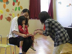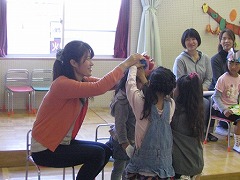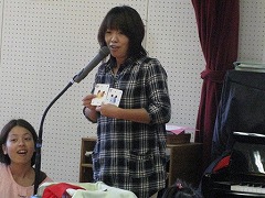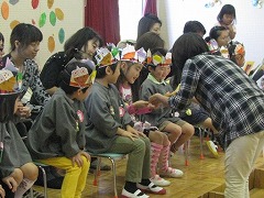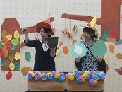 ペープサートを使ってクイズを出してくれました プチっこのお友だちも2人、来てくれました。