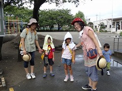 関東地方に大地震の警戒宣言が発令された時に、園児を安全に保護し、速やかに保護者に引き渡すことができるよう、保護者の方にも参加していただいて、引き渡し訓練を行いました。