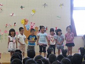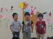 3歳のお誕生日おめでとう!次は、「見るプレゼント」です。1つ目は、舞台での発表初挑戦のすみれ組です。