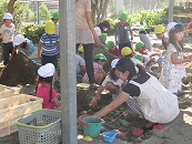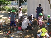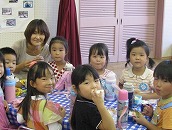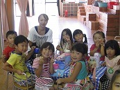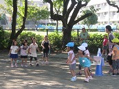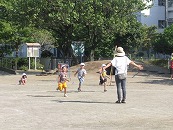 2学期1回目の「預かりごよっち」の日です。 今日は年少組と年長組合同の預かりごよっちでした。9月にはいっても、まだまだ暑い日が続いていますが、子どもたちは、友達や4人のお母さん先生と一緒に鬼ごっこをしたり、かけっこをしたり、砂場でおだんご作りや山作りをしたり。。。と元気に遊びました。年長組の子どもたちは、運動会に向けて、のぼり棒や竹馬に挑戦する子もいました。 外で元気に遊んだ後は、楽しみにしていたおやつタイムです。