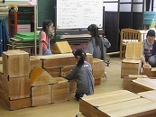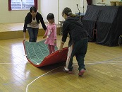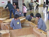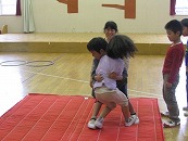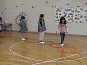 10月 5歳の「預かりごよっち」は雨が降ったので、ホールでみんなでゲームをしたり、大型積み木やすもう、フープ等で遊んだりして過ごしました。