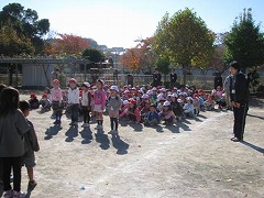 「はじめまして よろしくお願いします」のあいさつをした後、年長組が運動会で踊った「with you」を1年生のお友達の前で披露しました。年長組の子どもたちは、1年生のお友達が真剣に見てくれていることが嬉しくて、はりきって踊りました。